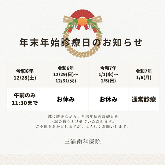 年末年始の歯科急患に関しましては横須賀市歯科医師会ホームページをご覧下さい。